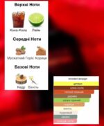 Освіжаюча кола, шипуча, з бульбашками, з кубиками льоду. Туди ж вичавили і половинку лайму.